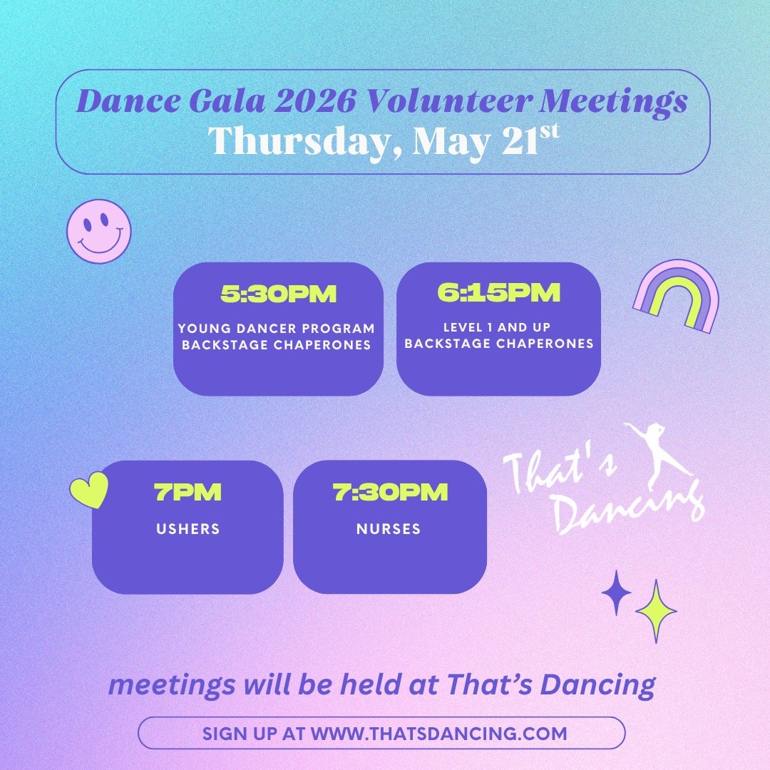 That’s Dancing is striving to create a Dance Gala experience that is safe and fun for every dancer participating. Thank you so much for trusting us with your dancer’s arts education and for allowing us to be a part of your child’s journey. For more information and to stay up to date on all Gala happenings, please visit our website www.thatsdancing.com and give us a follow on Facebook: That’s Dancing and Instagram: @thatsdancingdotcom